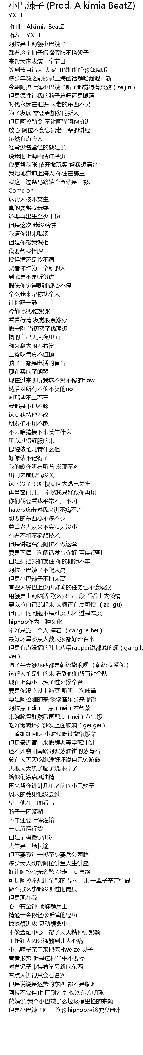 | [03:37.447] | dàn shì xiǎo bā là zǐ gāng shàng hǎi é hiphop yīng gāi yào lì cè lái |