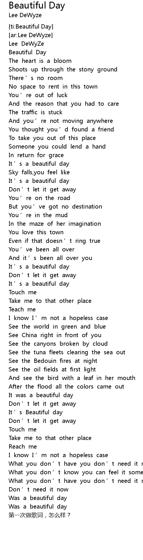 | [ti:Beautiful Day] | |