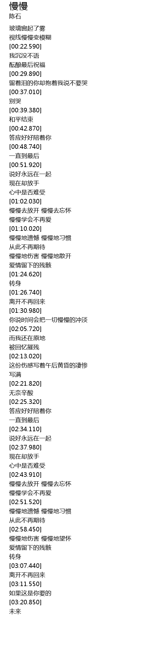 | [02:44.850] | 慢慢去放开 慢慢去忘怀 |