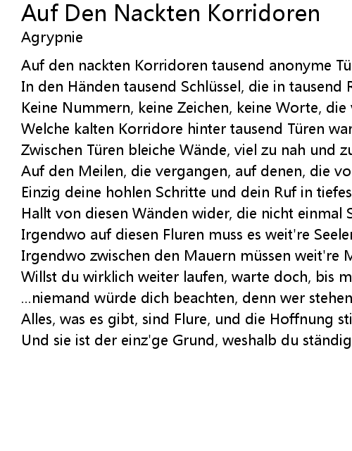 | Zwischen Tü ren bleiche W nde, viel zu nah und zu verschwiegen | |