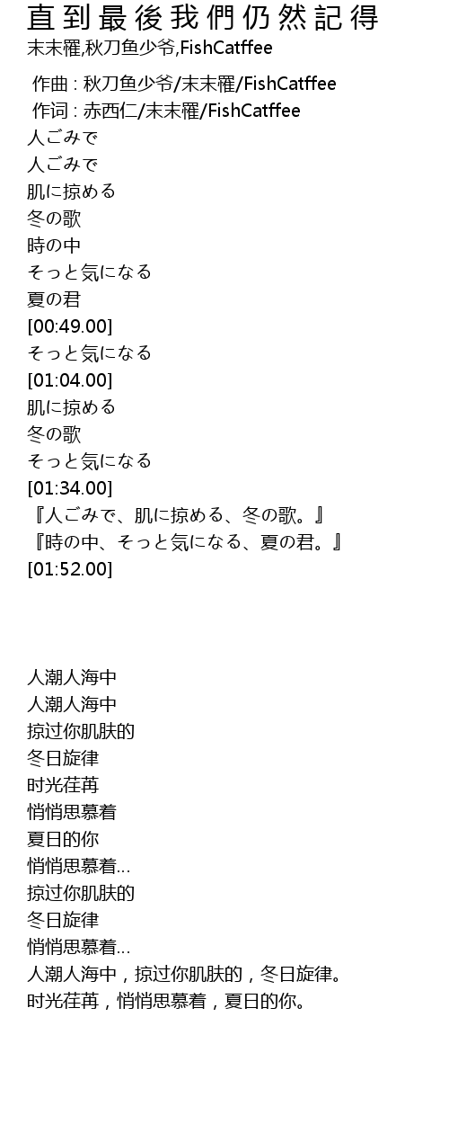 | [01:38.00] | 『人ごみで、肌に掠める、冬の歌。』 |