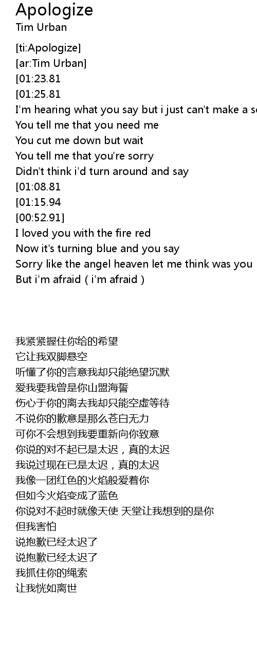 | [00:38.15][01:08.81] | That it's too late to apologize,it's too late |