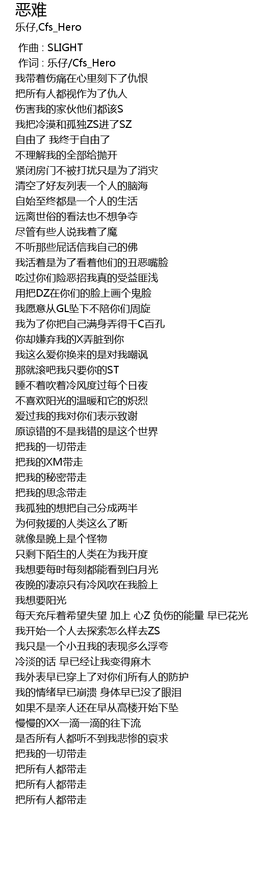 | [00:01.000] | 作词 : 乐仔/Cfs_Hero |