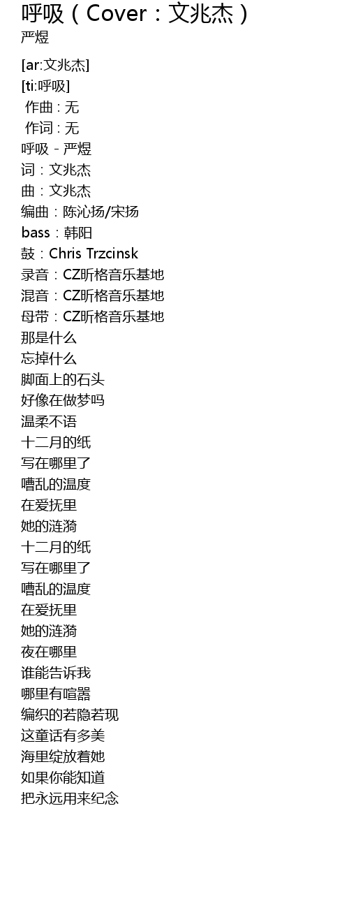 | [00:02.97] | 母带:CZ昕格音乐基地 |