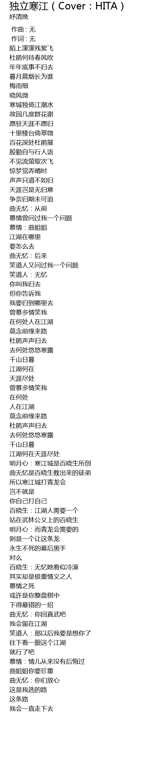 | [03:00.84] | 江湖何在 |