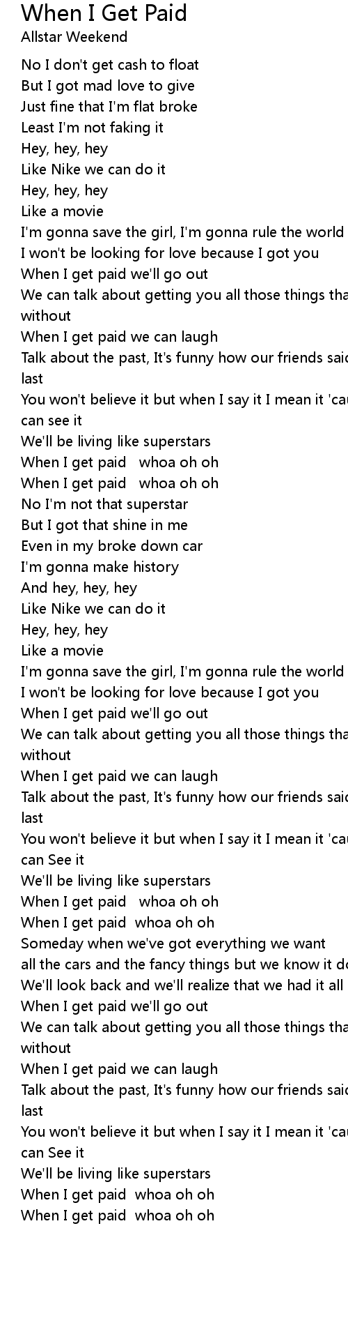 When I get paid whoa oh oh |