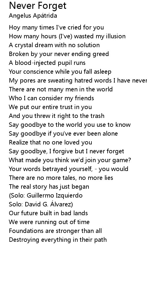 | Say goodbye, I forgive but I never forget | |