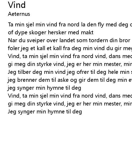 Ta min sjel min vind fra nord la den fly med deg over de gronne enger |