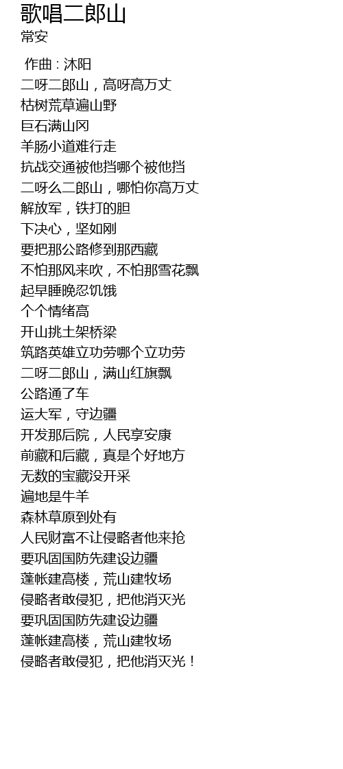 | [02:18.980] | 二呀二郎山,满山红旗飘 |