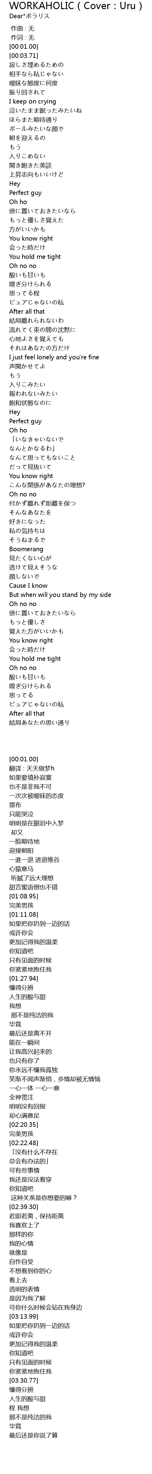 | Song | WORKAHOLIC(Cover:Uru) |