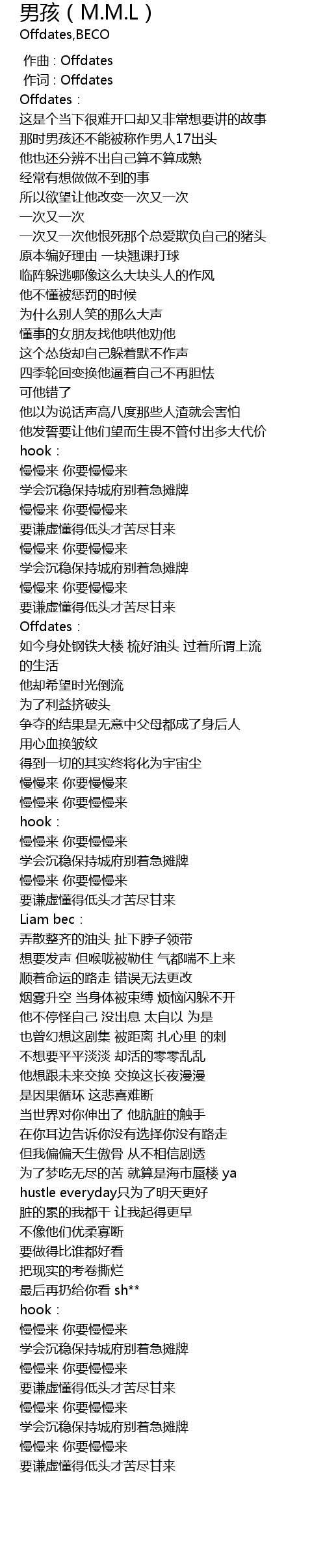 | [00:23.925] | 那时男孩还不能被称作男人17出头 |