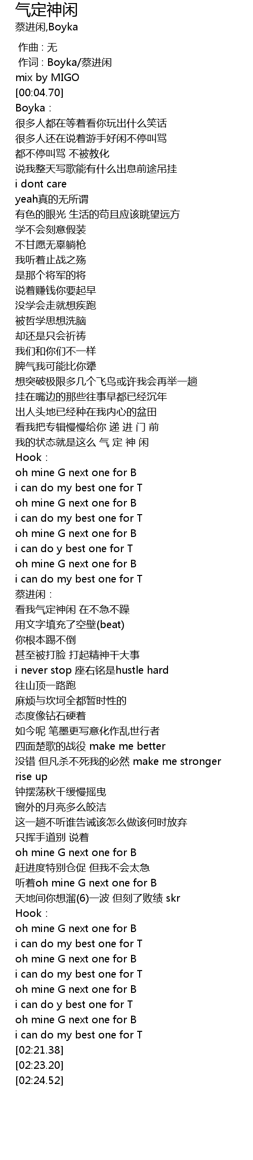 | [00:51.03] | 我的状态就是这么 气 定 神 闲 |