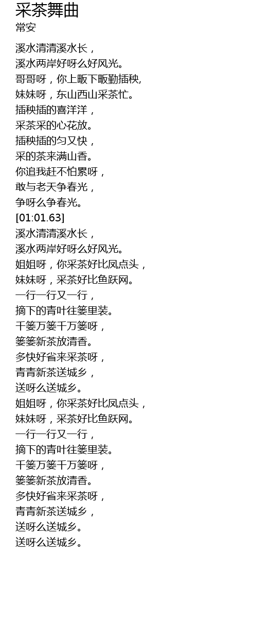 | [00:34.07] | 妹妹呀,东山西山采茶忙。 |