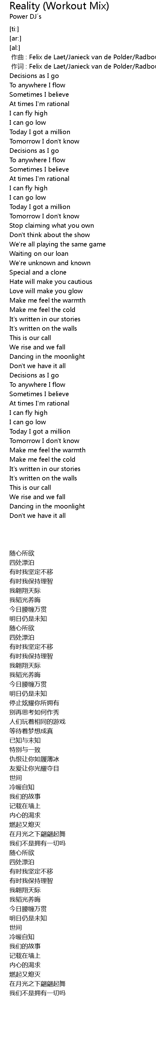 | [00:01.000] | 作词 : Felix de Laet/Janieck van de Polder/Radboud Miedema |