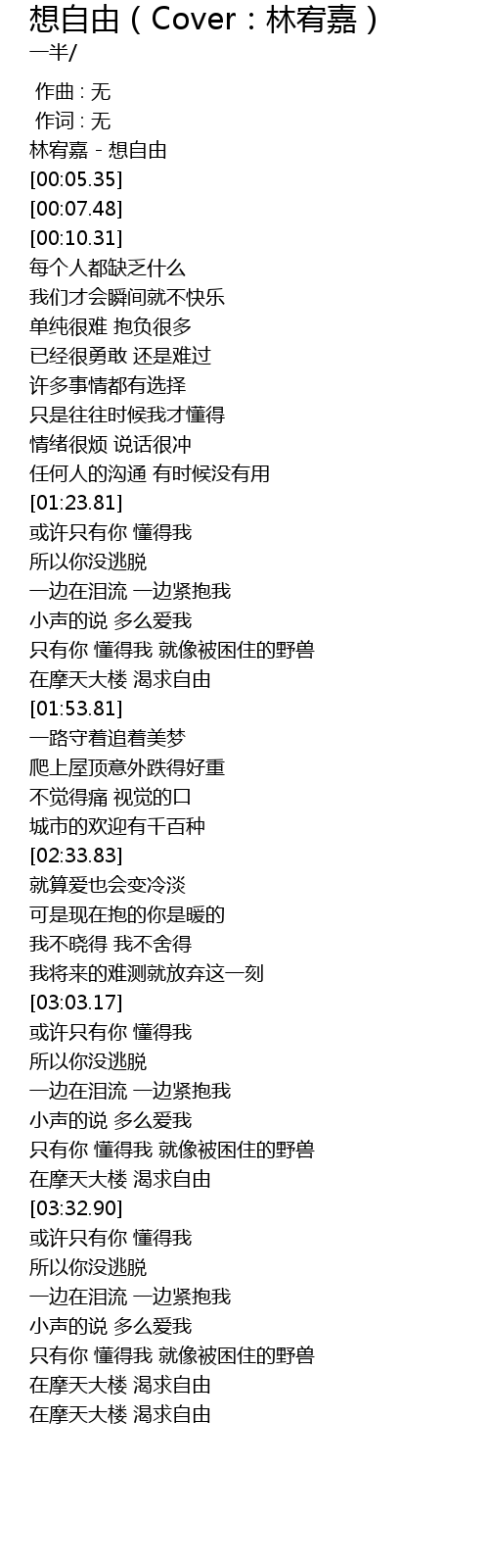 | [00:03.49] | 林宥嘉 - 想自由 |