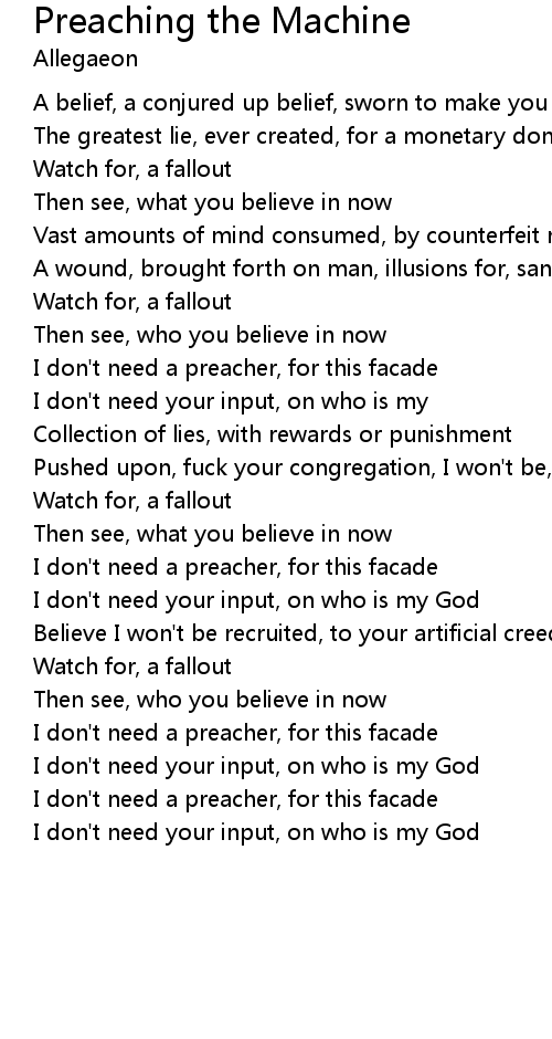 | Pushed upon, fuck your congregation, I won't be, taken | |