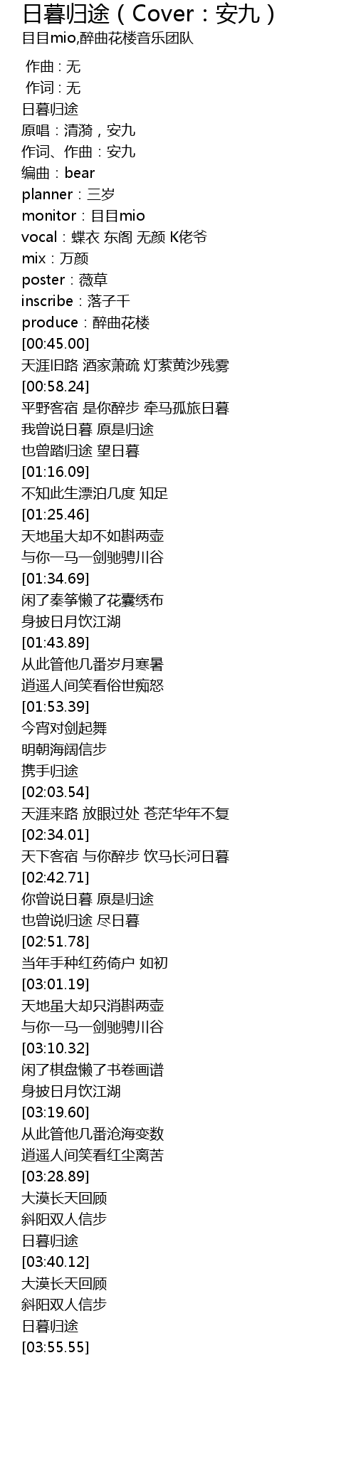 | [02:34.13] | 天下客宿 与你醉步 饮马长河日暮 |