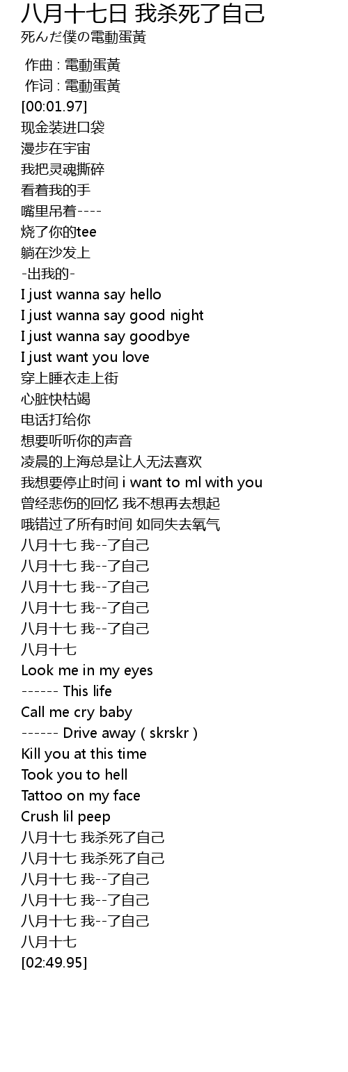 | [02:23.82] | 八月十七 我杀死了自己 |