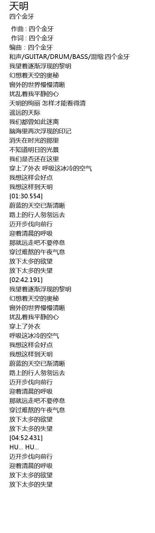 | [00:17.068] | 和声/GUITAR/DRUM/BASS/混缩:四个金牙 |