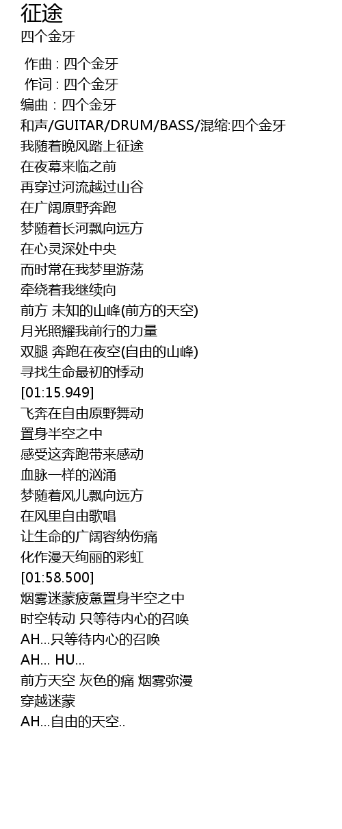 | [00:20.792] | 和声/GUITAR/DRUM/BASS/混缩:四个金牙 |