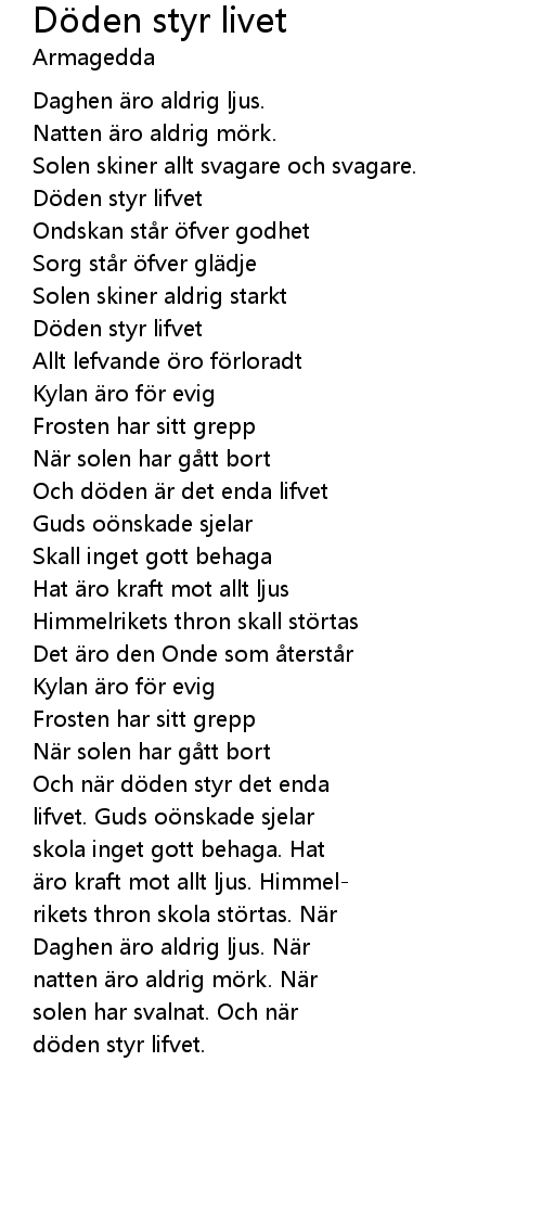 | Song | Döden styr livet |