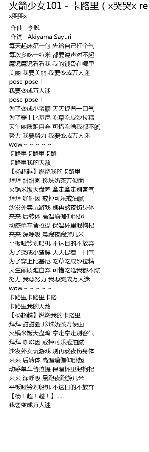 | [01:51.03] | kǎ lù lǐ kǎ lù lǐ kǎ lù |