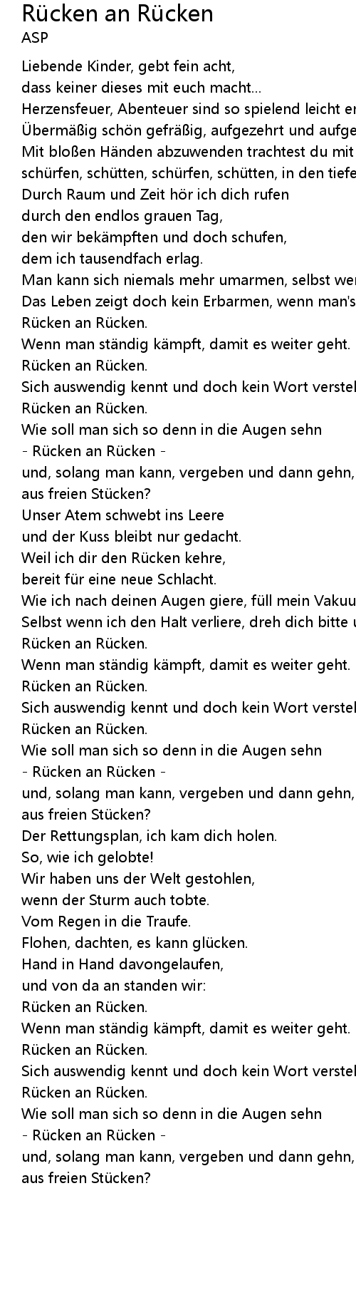 | Rü cken an Rü cken | |