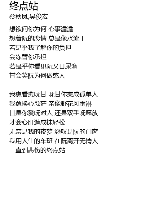 | 我愈看愈呒甘 呒甘你变成孤单人 | |