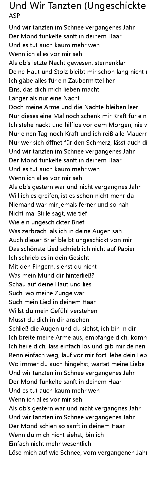 | Und wir tanzten im Schnee vergangenes Jahr | |