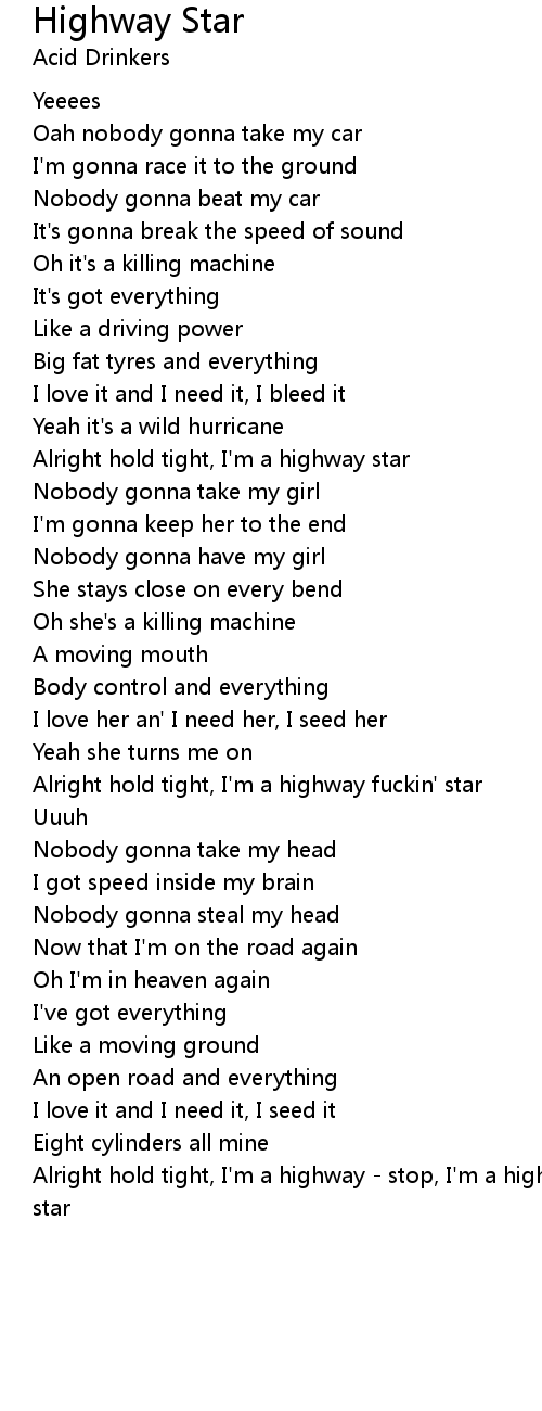 Alright hold tight, I'm a highway - stop, I'm a highway - stop, I'm a highway star |