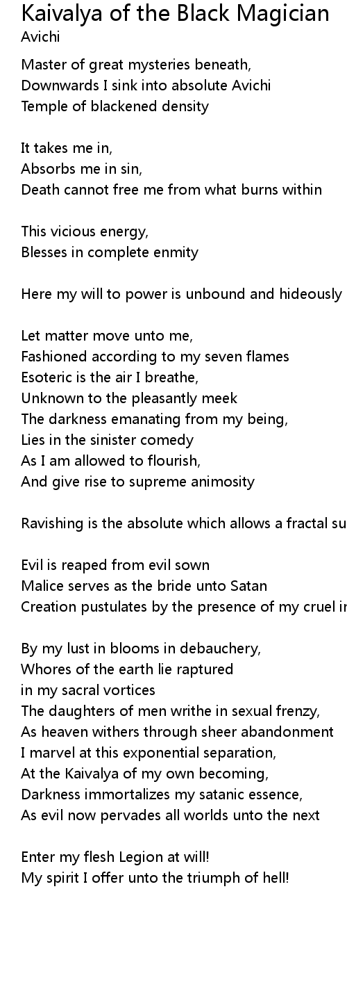 Kaivalya of the Black Magician Lyrics