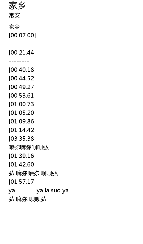 | [01:58.54][00:40.18] | wo de jia xiang zai ri ka ze |