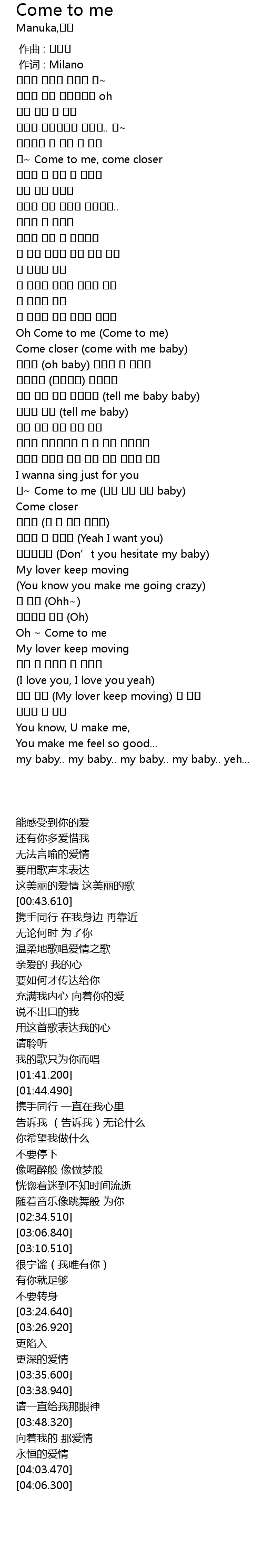 | [03:06.840] | 오~ Come to me (나와 함께 해줘 baby) |