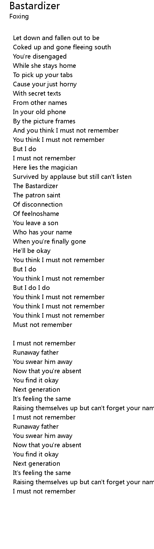 You think I must not remember |