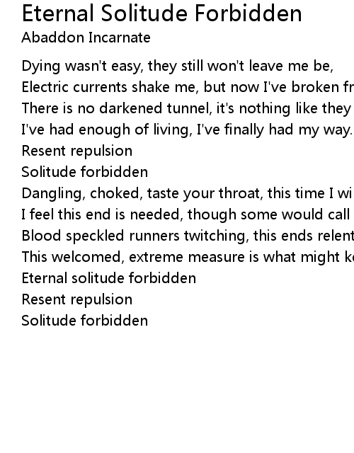 Eternal solitude forbidden |