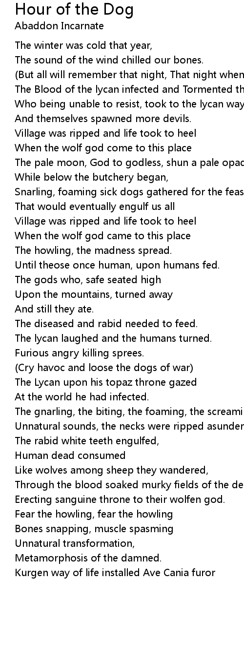 Hour of the Dog Lyrics