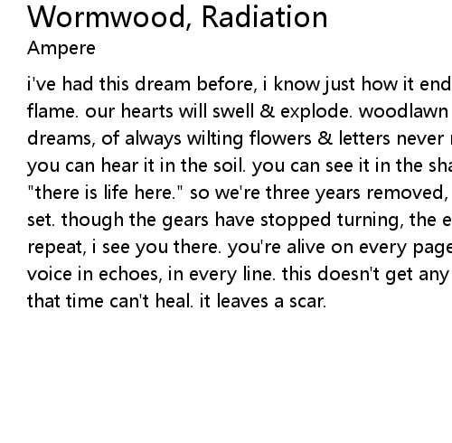 i've had this dream before, i know just how it ends. our eyes will fill with flame. our hearts will swell & explode. woodlawn is a place of abandoned hopes & dreams, of always wilting flowers & letters never read. but there is life here. you can hear it in the soil. you can see it in the shadows, etched in stone: "there is life here." so we're three years removed, and the earth around us has set. though the gears have stopped turning, the engine still hums. rewind, repeat, i see you there. you're alive on every page of every book. i hear your voice in echoes, in every line. this doesn't get any easier. this is a wound that time can't heal. it leaves a scar.