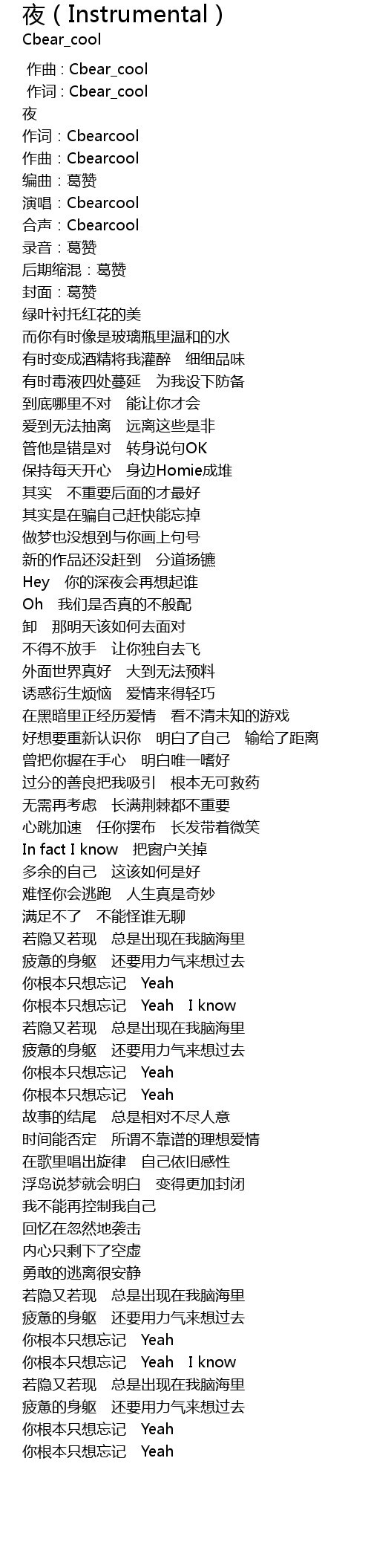 | [00:02.59] | 作词:Cbearcool |