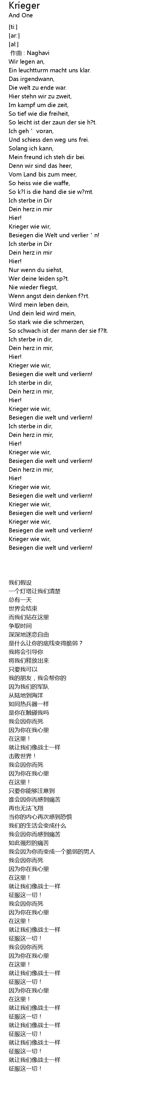 | [01:55.79] | Krieger wie wir, |