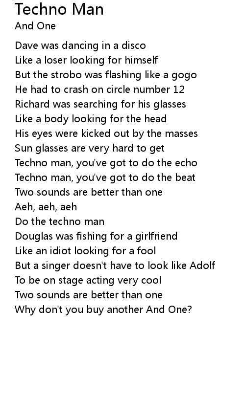 | Techno man, you've got to do the beat | |