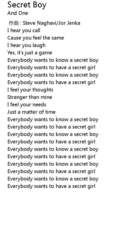 | [01:29.54] | Everybody wants to know a secret boy |