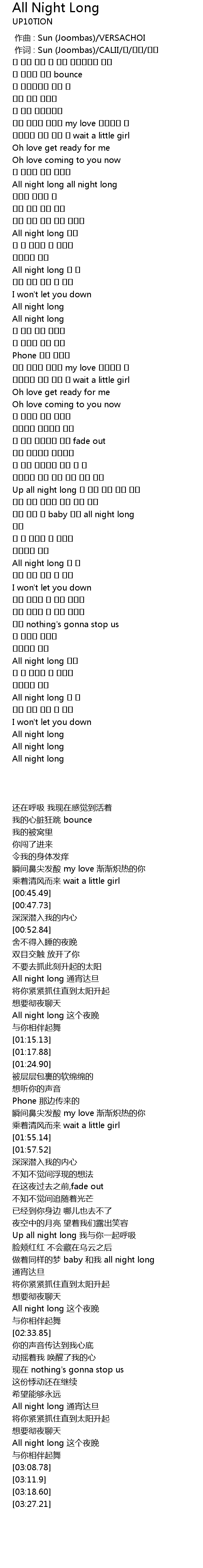 | [02:17.37] | 같은 꿈을 꿔 baby 나와 all night long |