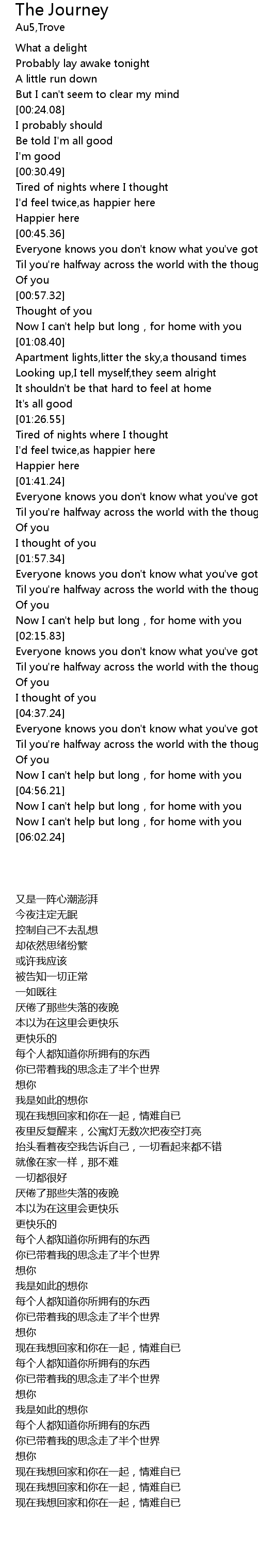 | [05:41.14] | Now I can' t help but long, for home with you |