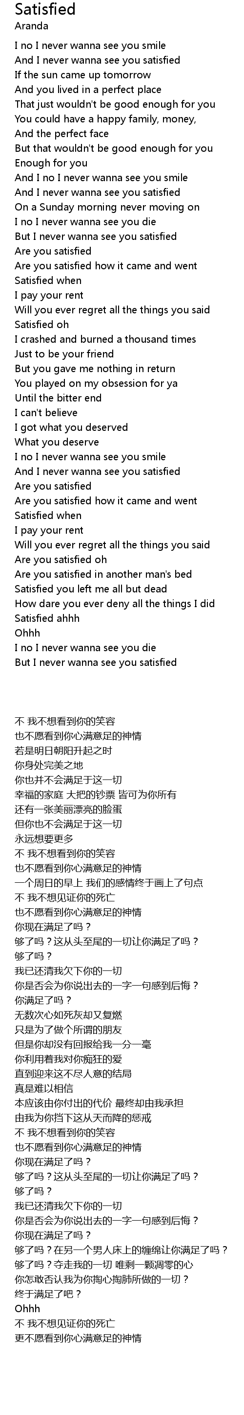 But I never wanna see you satisfied |
