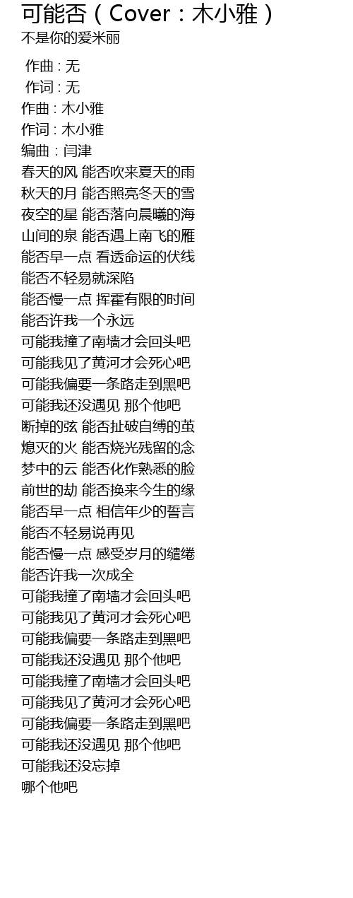 | [00:00.00] | zuò qǔ : mù xiǎo yǎ |