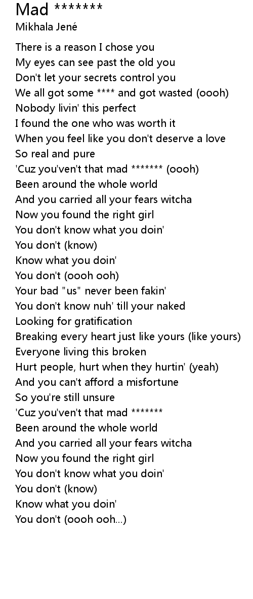 'Cuz you'ven't that mad ******* (oooh) |