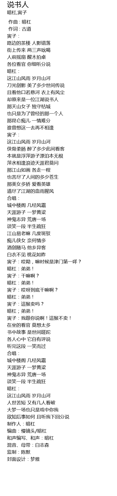 | [00:38.41] | què yuán lái shì yī wèi jiāng hú shuō shū rén |