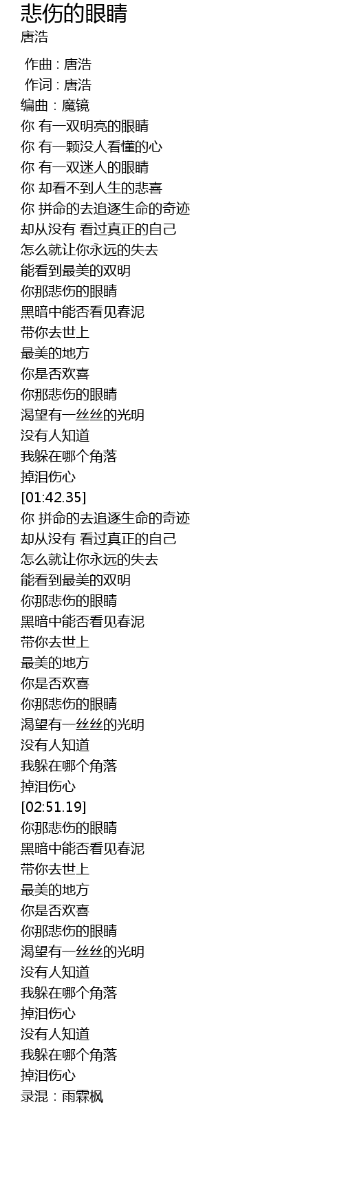 | [02:34.76] | nǐ nà bēi shāng de yǎn jīng |