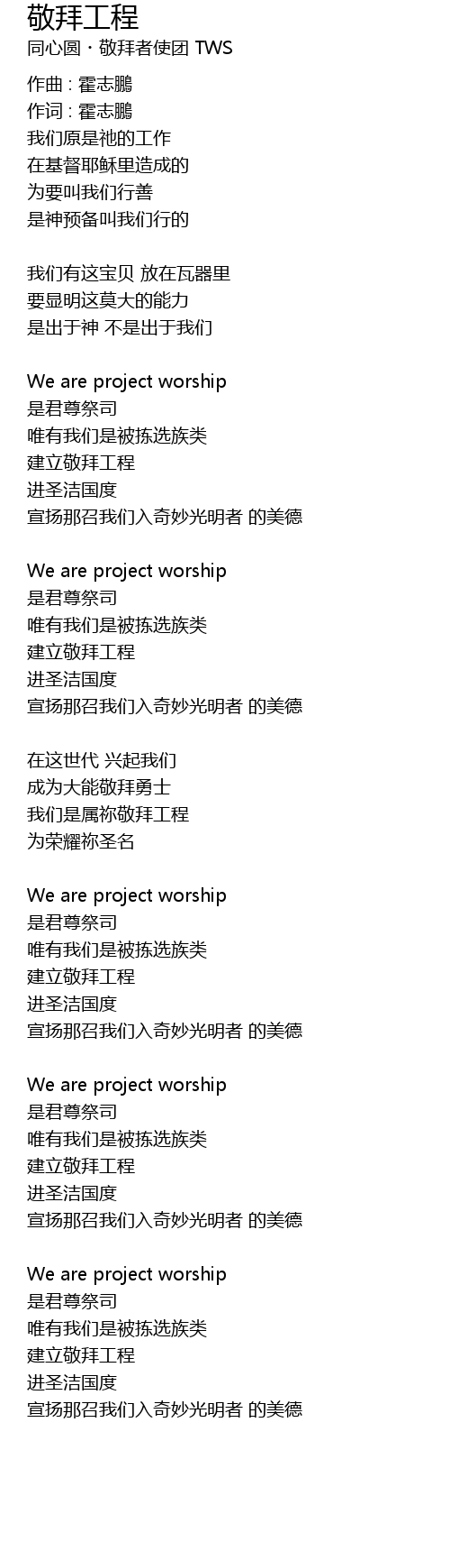 | 我们是属祢敬拜工程 | |