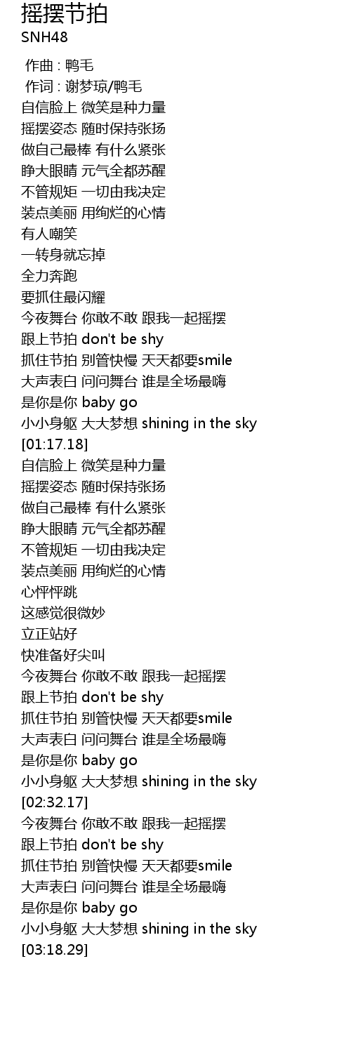 | [02:59.41] | gēn shàng jié pāi don' t be shy |